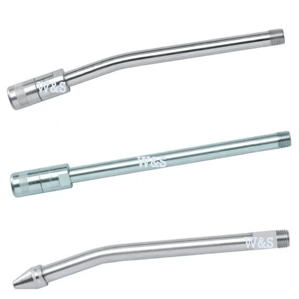 Extension pipes for grease gun permit ease of attachment to nipples and are manufactured from heavy duty steel tubing.
